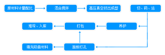 2、生產(chǎn)工藝簡(jiǎn)述 (1)、計(jì)量配比、攪拌:輕質(zhì)高強(qiáng)纖維混凝土聲屏障板主要使用水泥、石粉、纖維、外加劑及吸聲材料。原料經(jīng)主控計(jì)算機(jī)設(shè)定配合比進(jìn)行精確計(jì)量后,依次序送入專(zhuān)用混合攪拌機(jī)進(jìn)行加水均勻拌合。